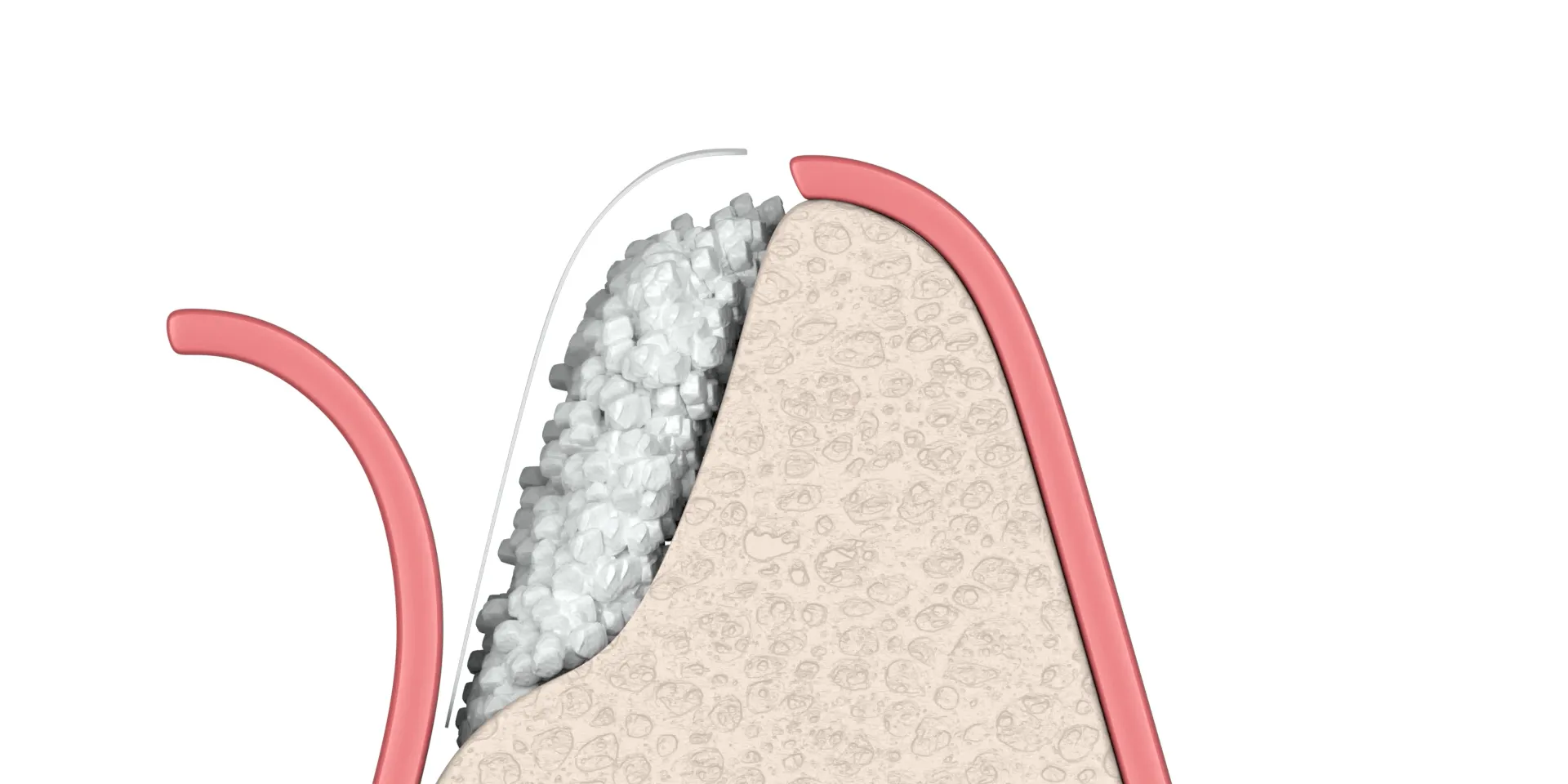 Sometimes, there is a large deficiency of bone requiring a significant increase in height and width. In these cases, a larger bone grafting procedure, called ridge augmentation, may be required in order to prepare for implant placement. The animation below illustrates the process of ridge augmentation. Bone is added to the site, usually in particulate form. A barrier called a membrane is placed to secure the graft and guide the growth of new bone.